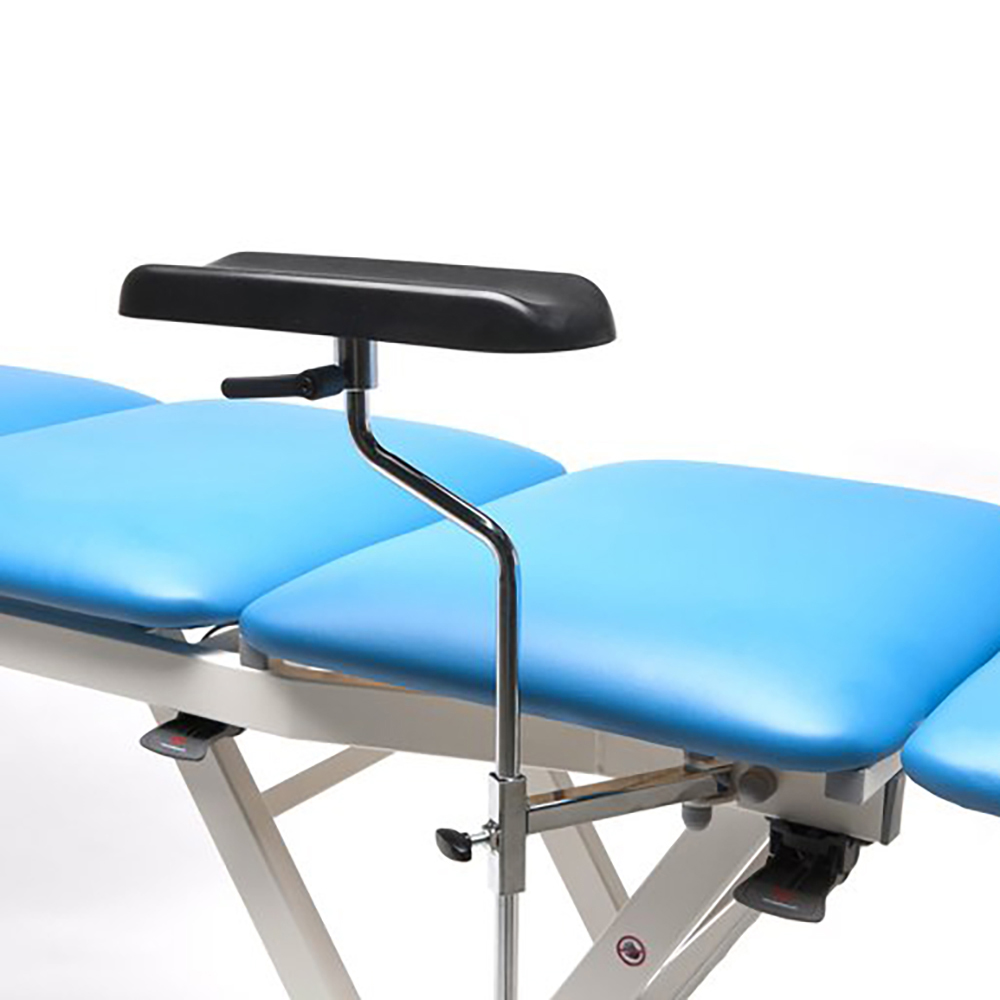 De armsteun is uitgevoerd in PU en daardoor erg makkelijk te reinigen. De armsteun is verstelbaar in hoogte en diepte door de adapters en door de knik in de chromen staander is de armsteun ook verstelbaar in breedte.