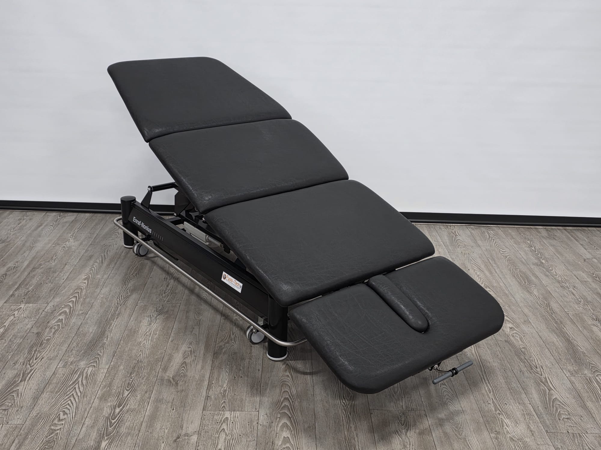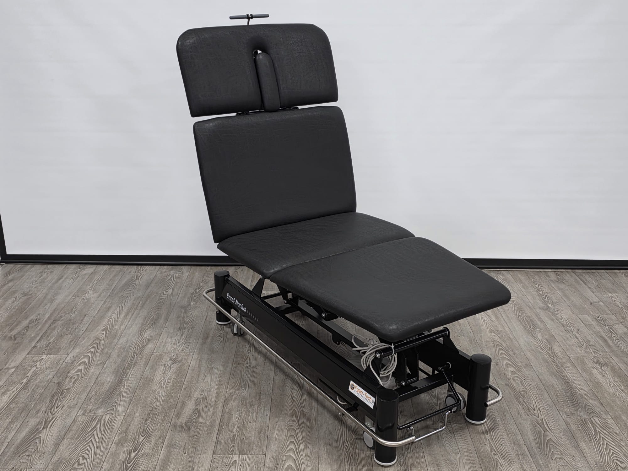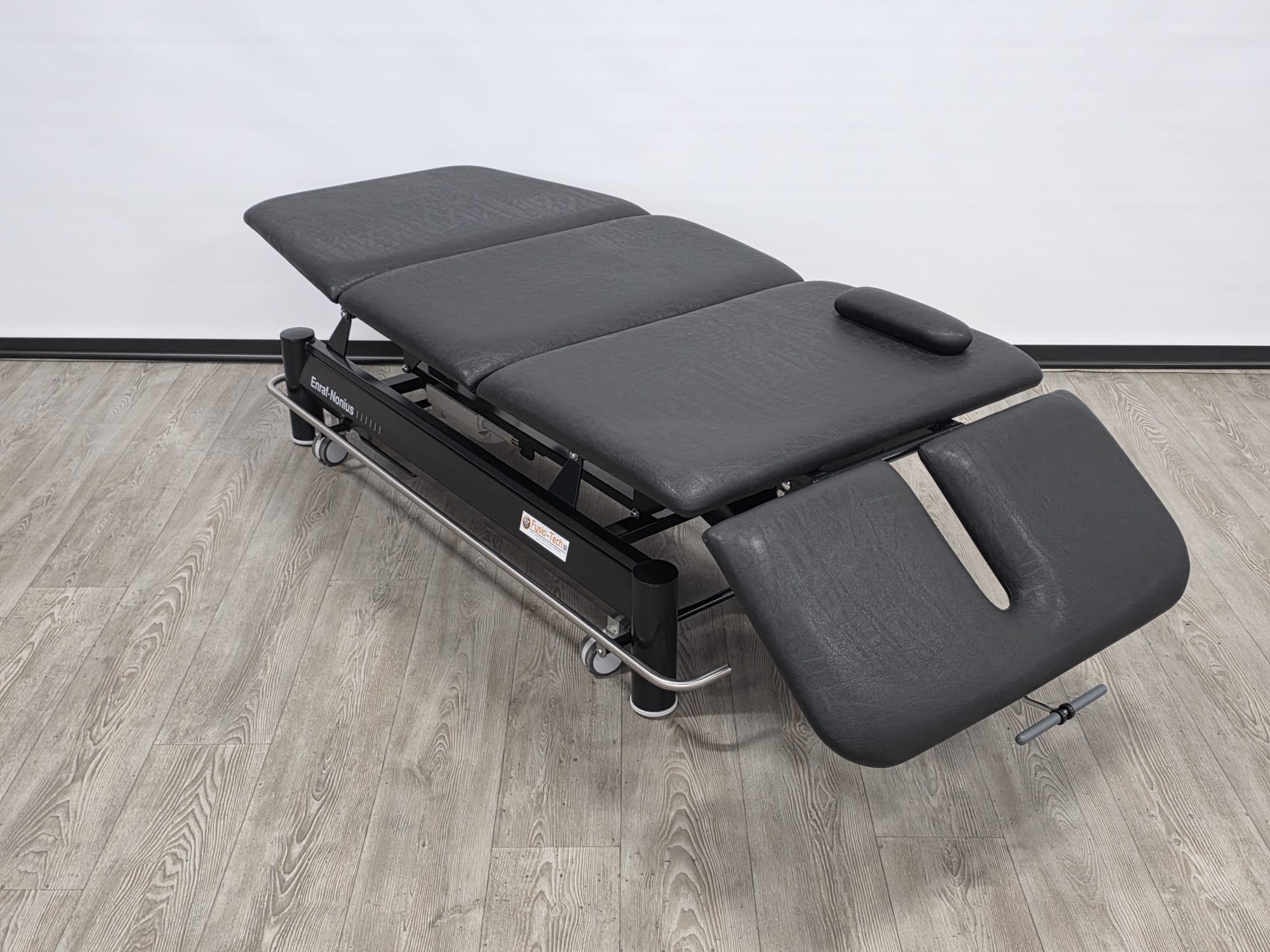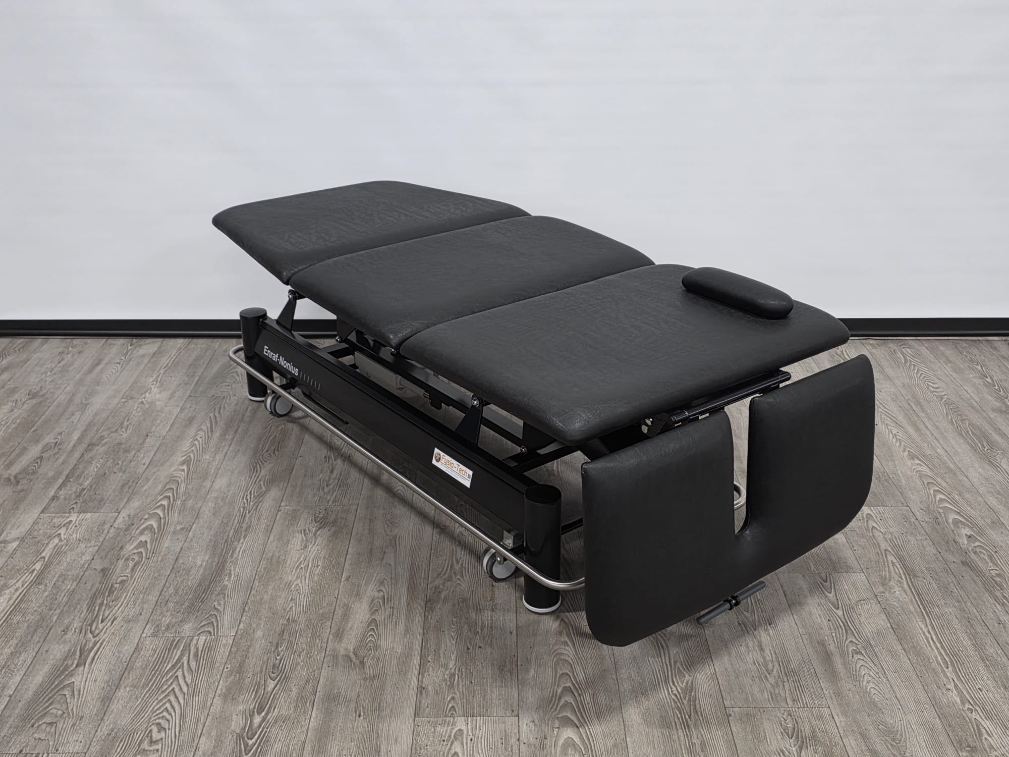 Deze professionele behandeltafel is elektrisch in hoogte verstelbaar doormiddel van rondomschakeling