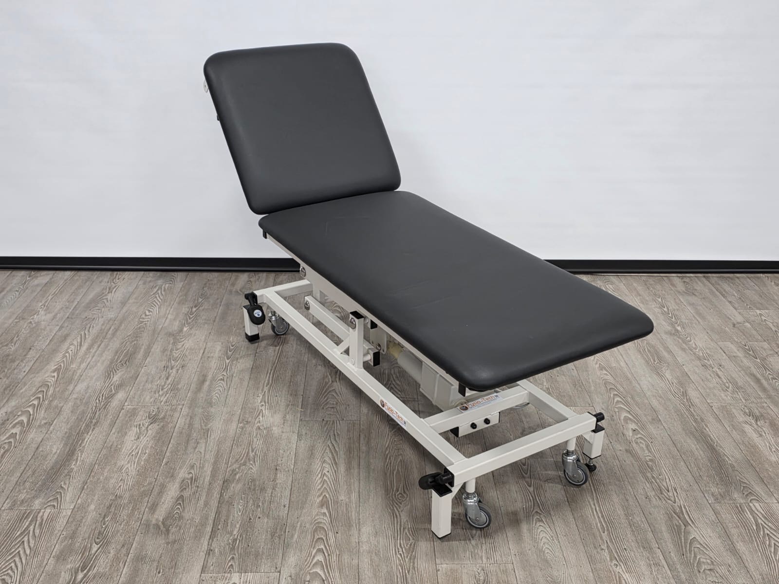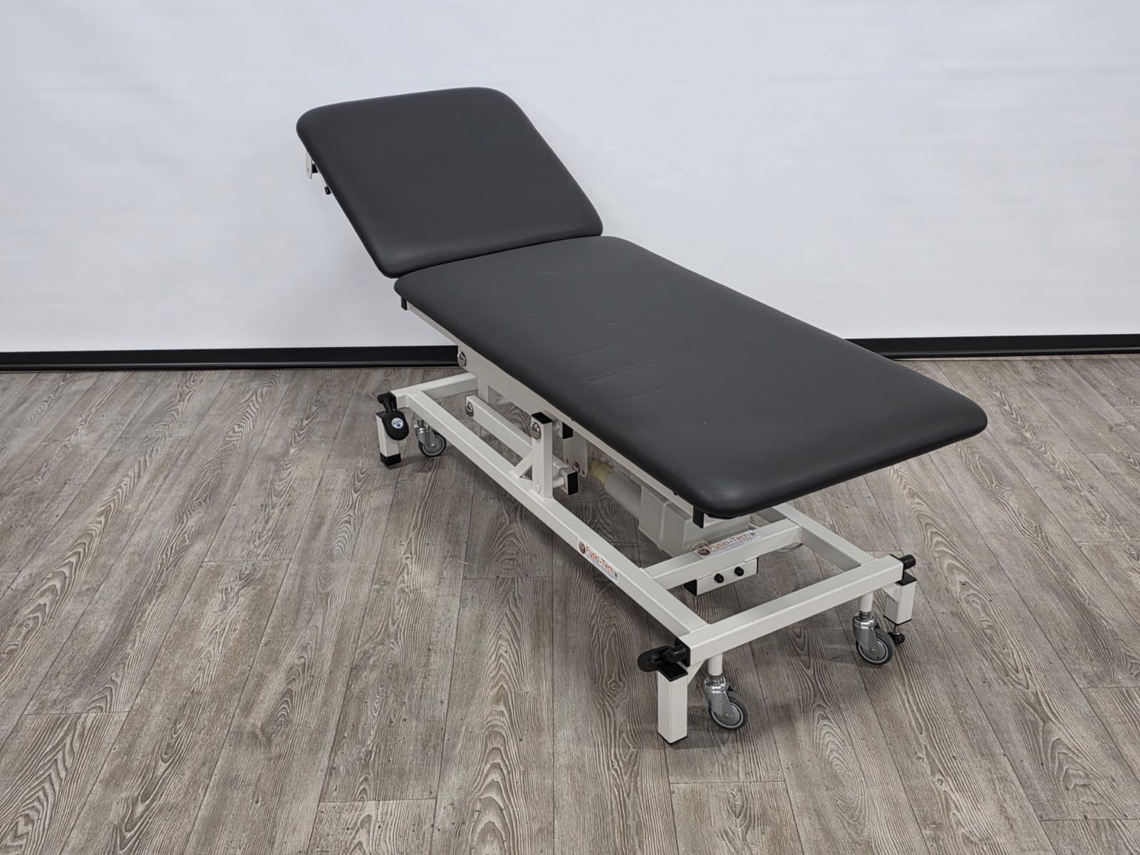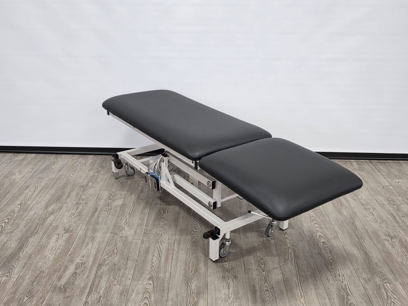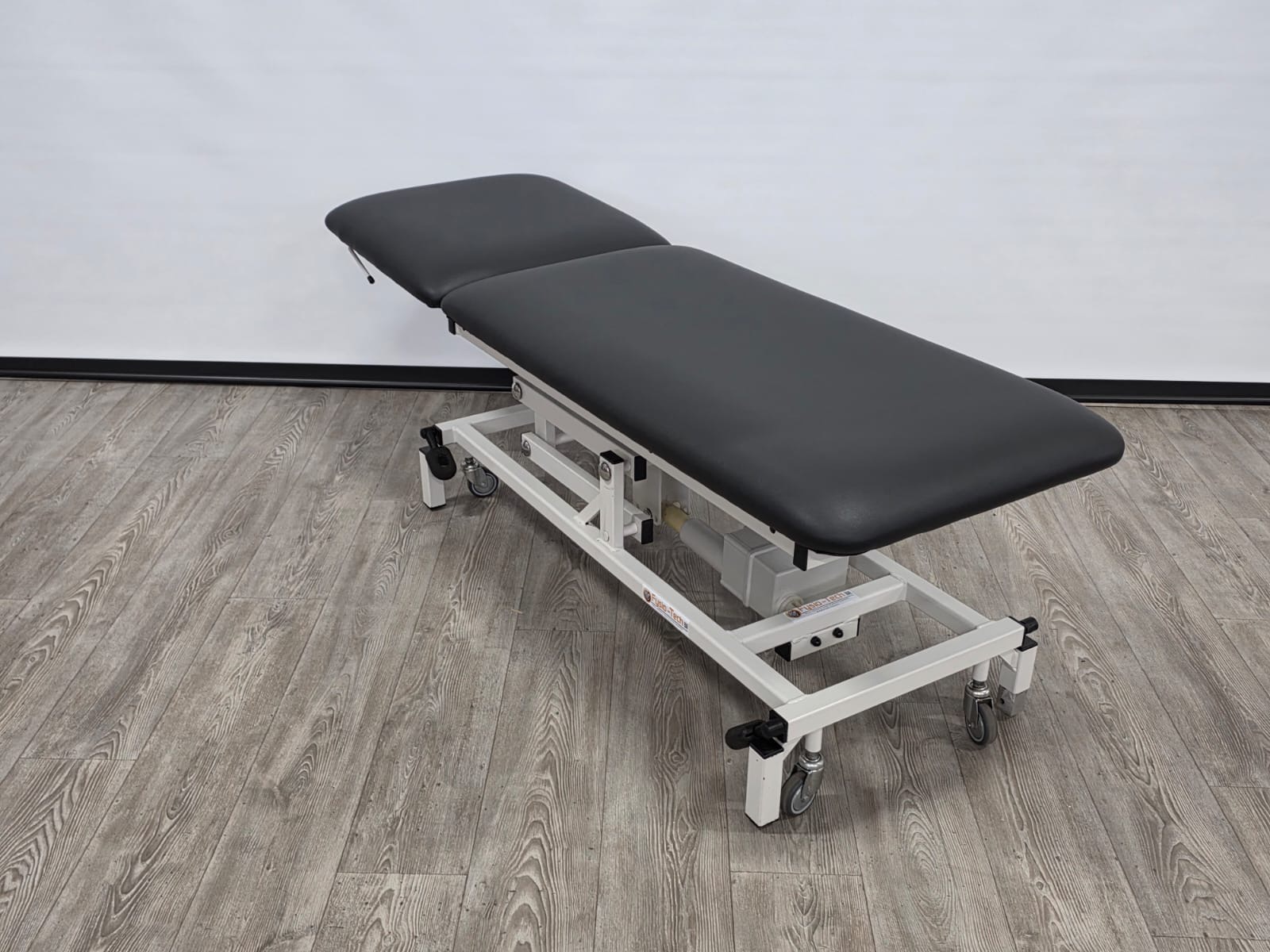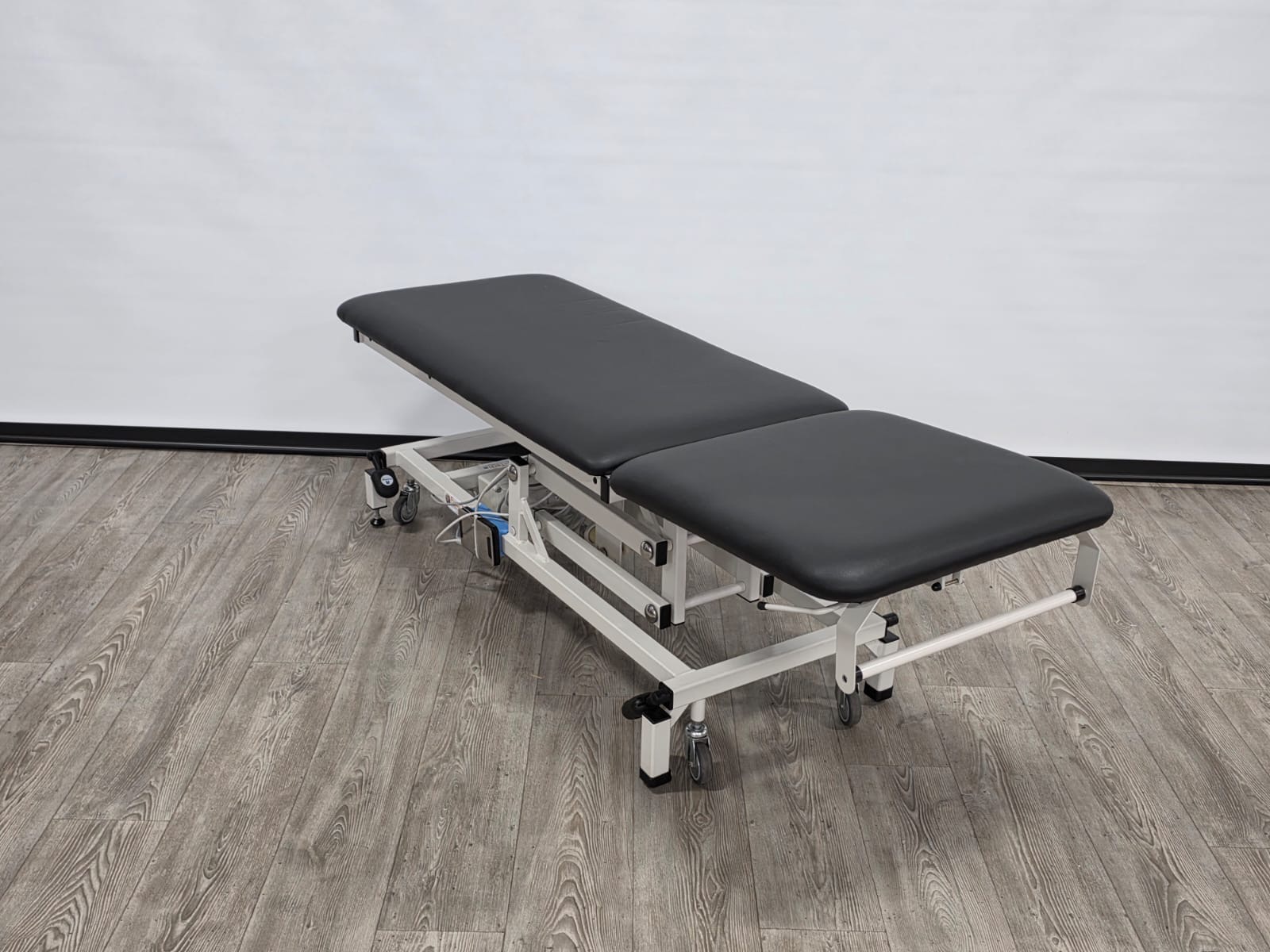 Deze professionele behandeltafel is elektrisch in hoogte verstelbaar door middel van een voetschakelaar.