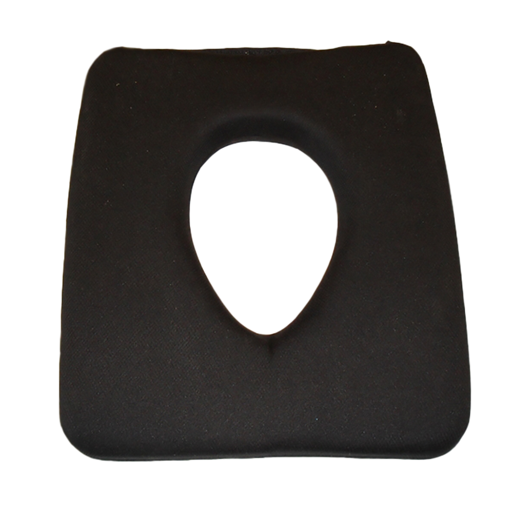 Zacht schuim kussen ter bescherming van het gezicht bij buikligging op een massagetafel. De zwarte microfiber hoes is wasbaar.