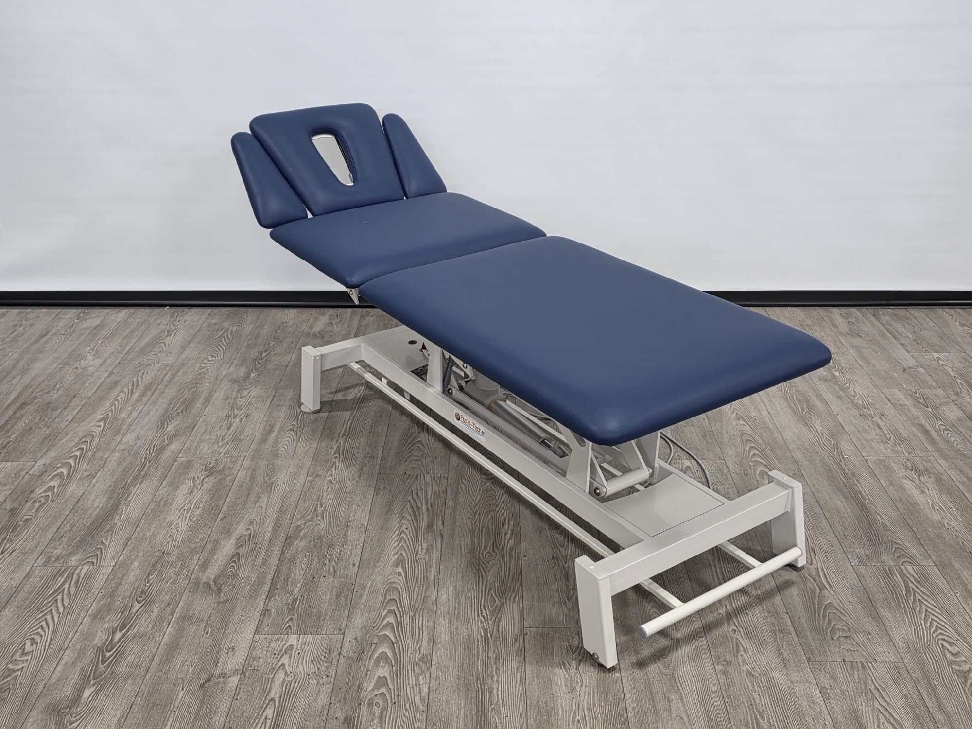 Deze professionele behandeltafel is elektrisch in hoogte verstelbaar door middel rondom bediening.