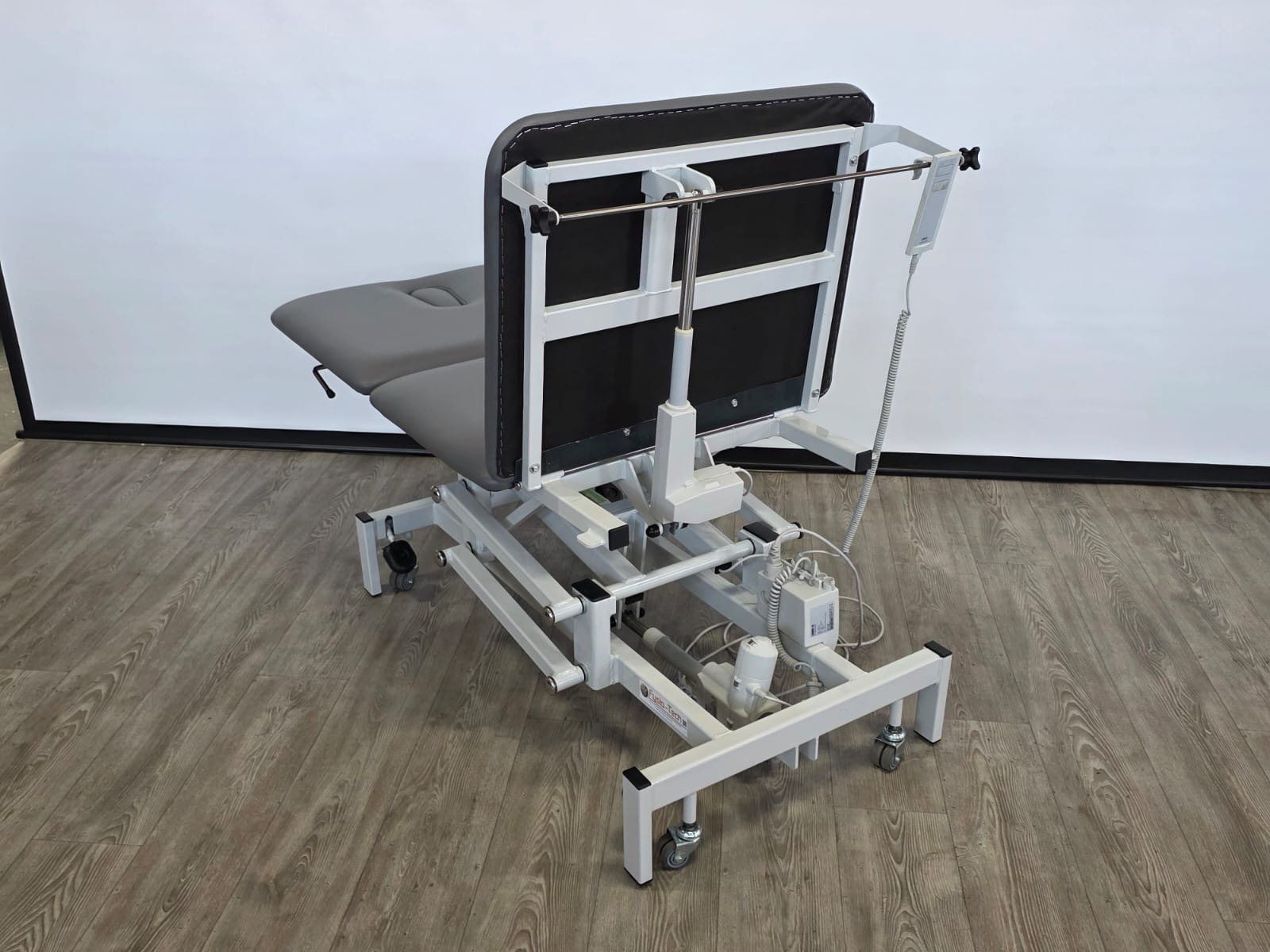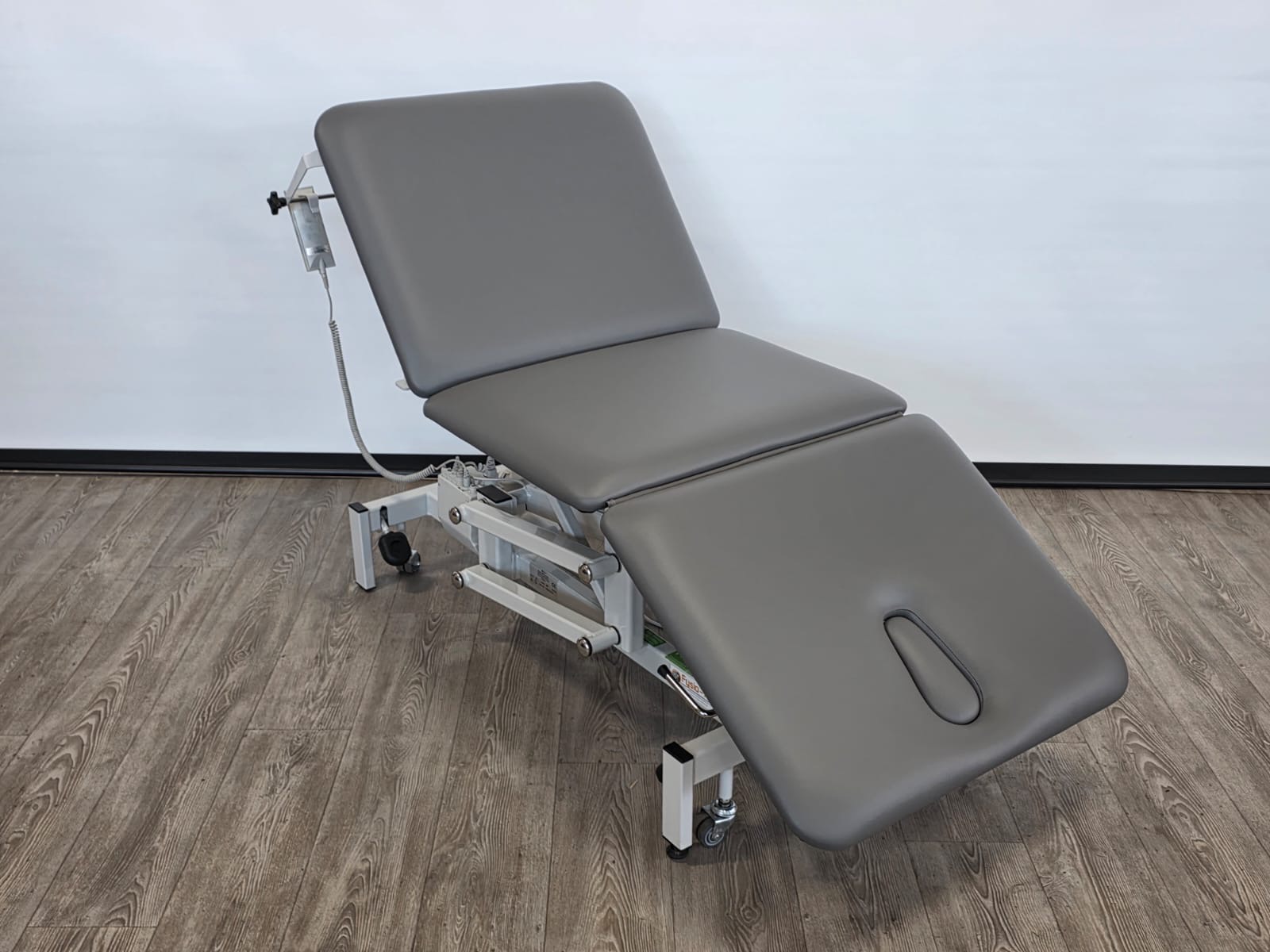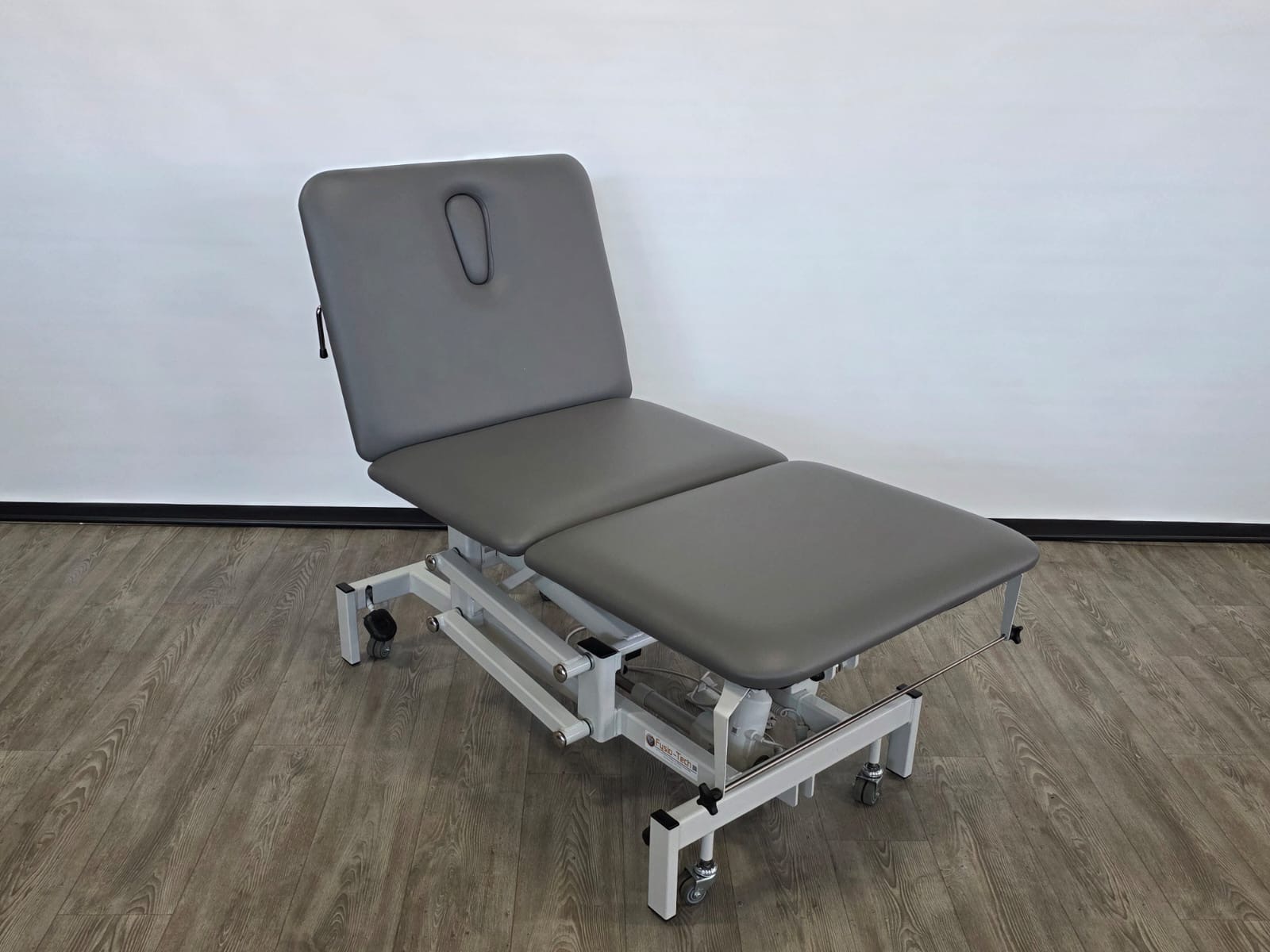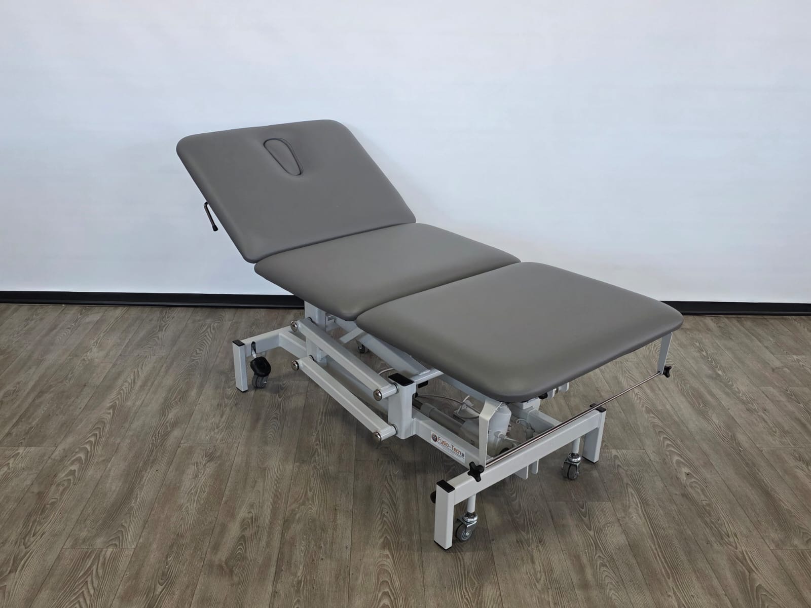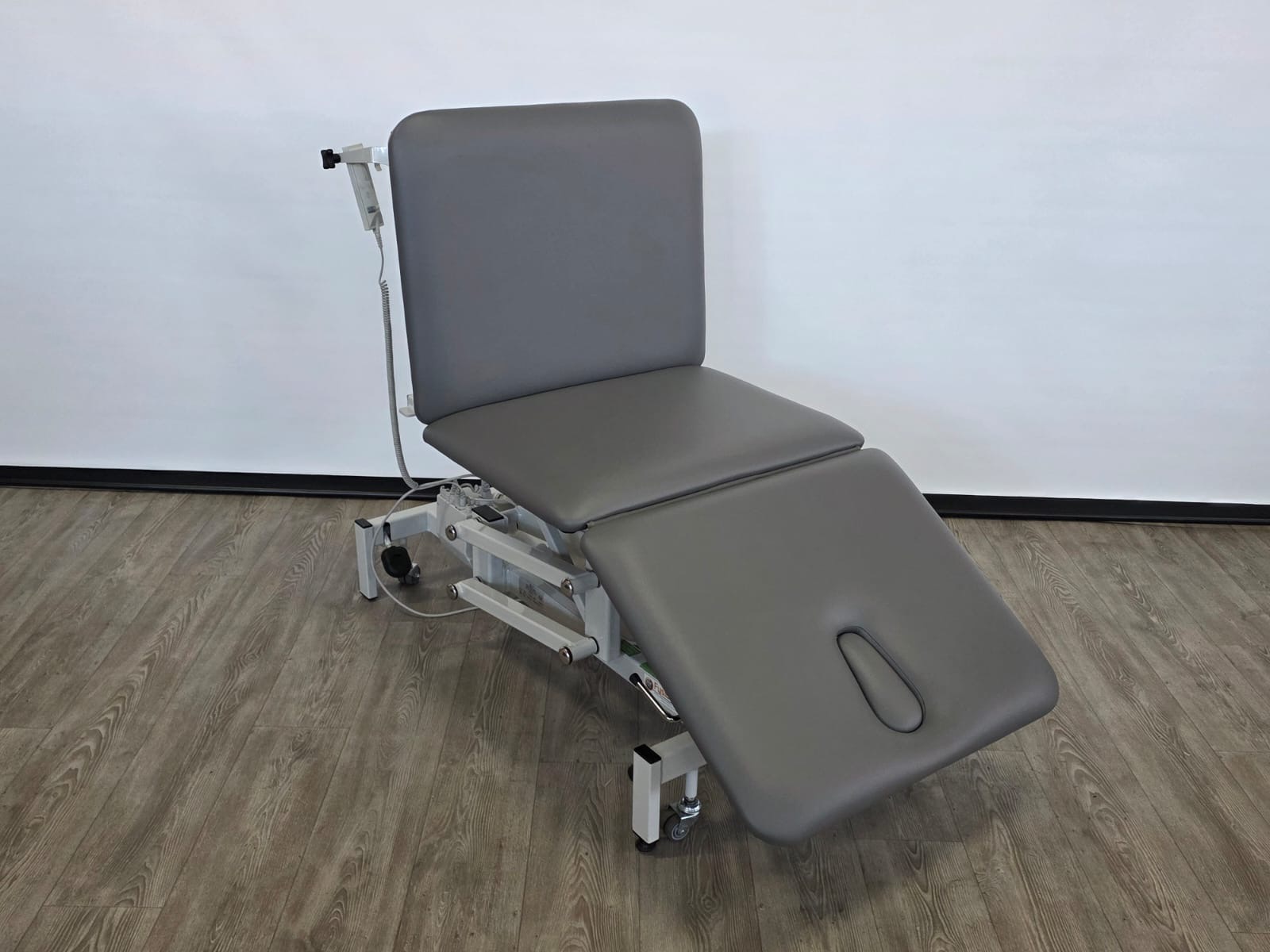 Deze behandeltafel is elektrisch in hoogte verstelbaar door middel van handschakelaar. Door een tweede motor is het hoofddeel ook elektrisch verstelbaar.