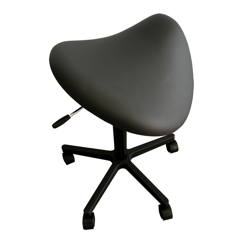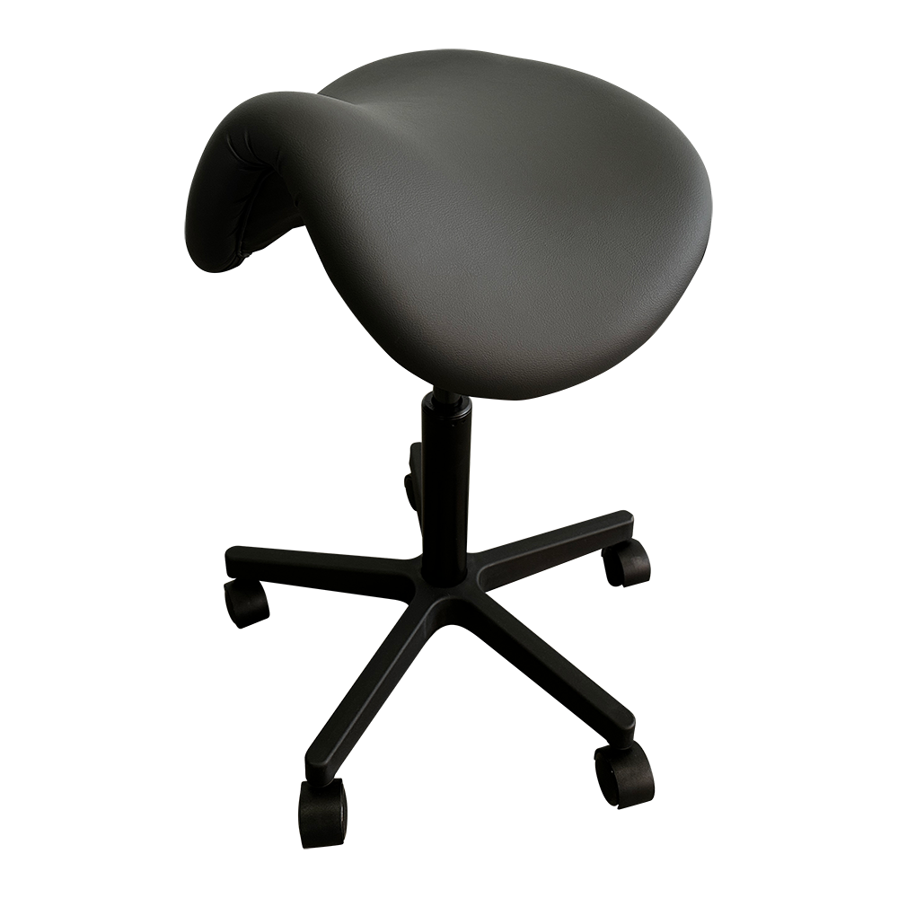 Goede kwaliteit zadelkruk met gestoffeerde zitting in een Kleur naar keuze. De gevormde brede zitting is gemaakt van zachte polyether voorzien van kunstleer. Door de zachte, en toch stevige zitting is de kruk geschikt voor langere behandelingen.
