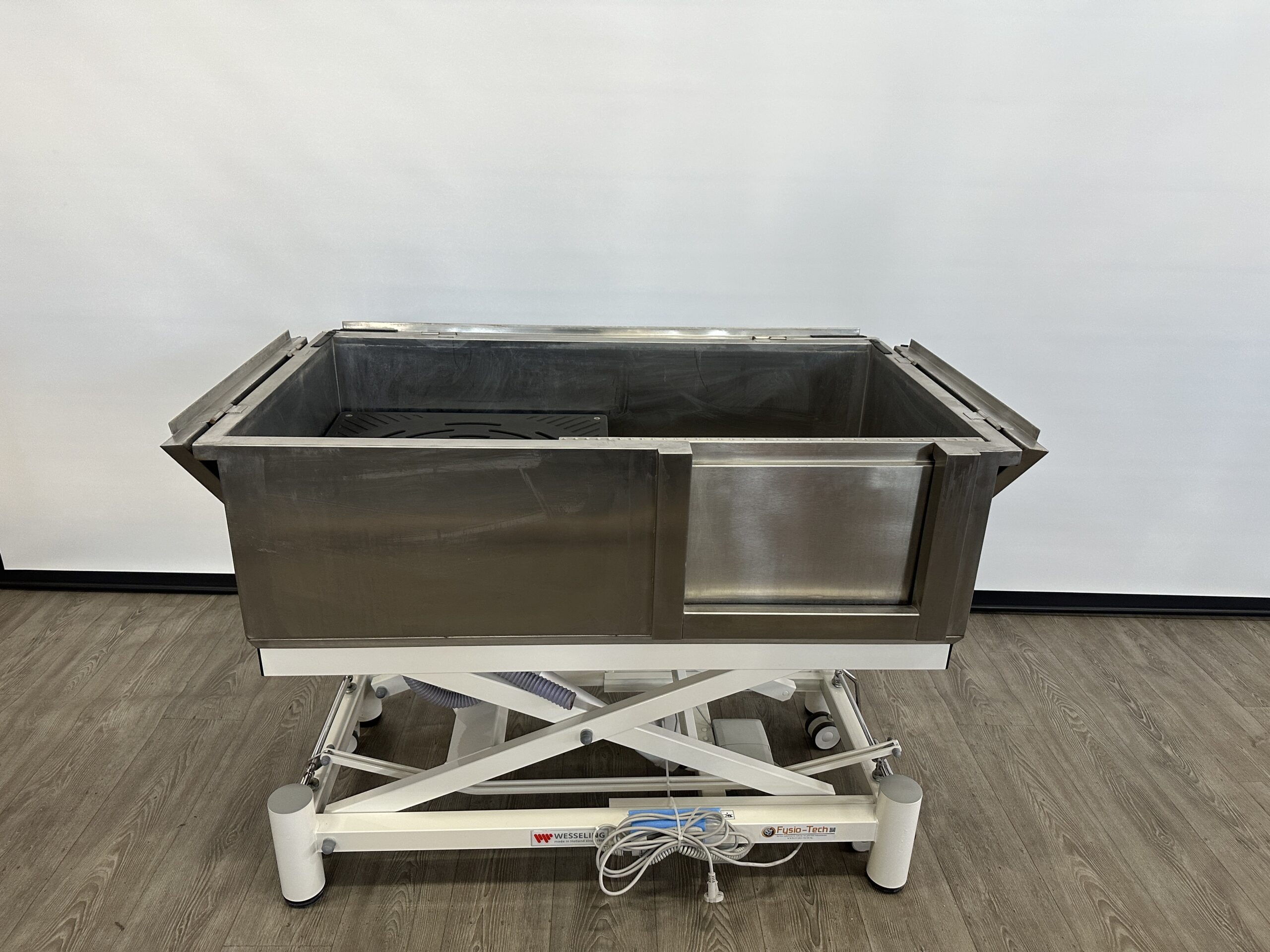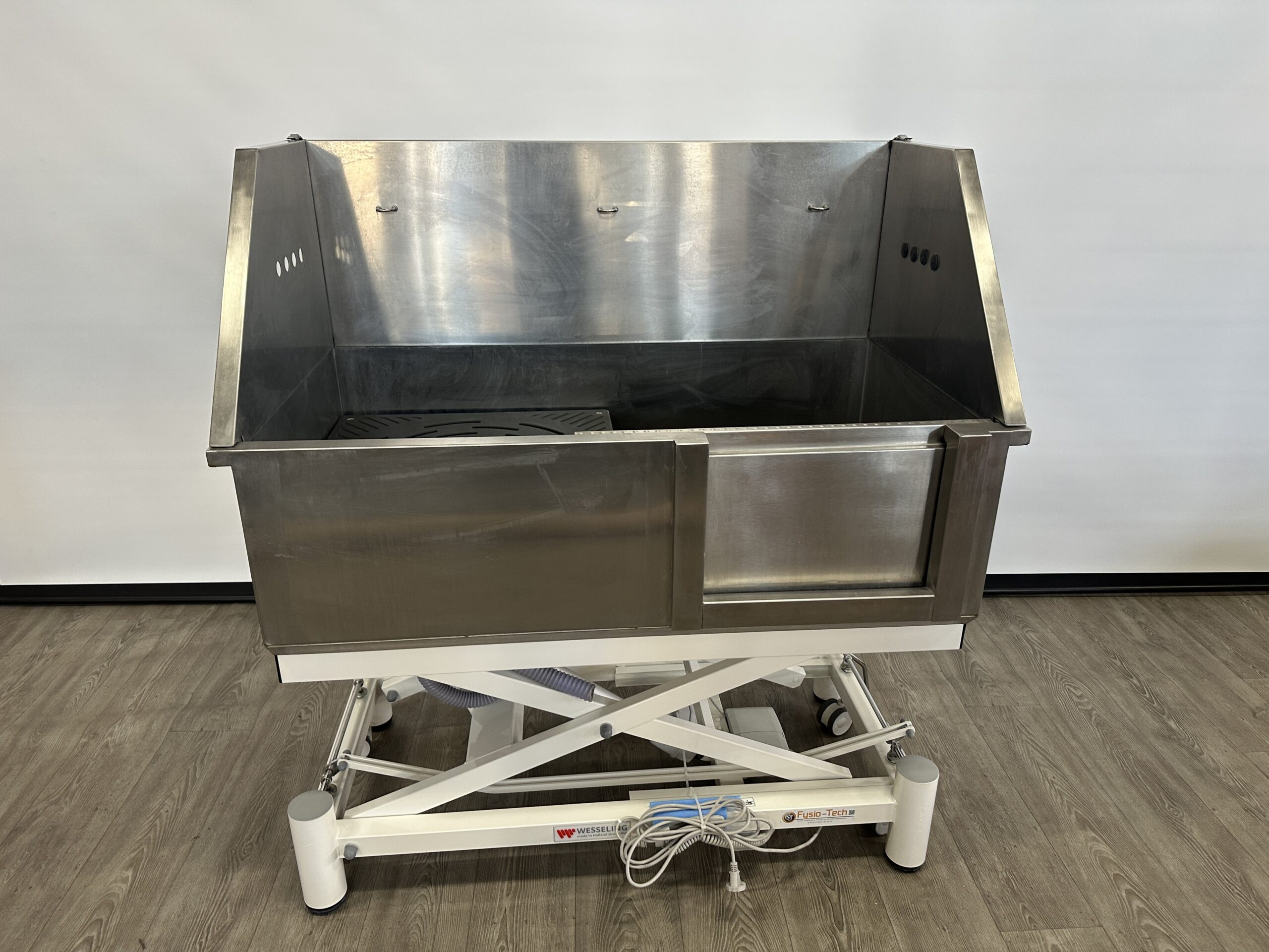 Dit Stabilo bath van het merk Wesseling is ideaal voor het wassen of onderzoeken van allerlei soorten dieren. Het gehele frame heeft een epoxypoedercoating met daarboven op een rvs bad. De tafel is voorzien van een centraal wielhefsysteem waardoor de tafel makkelijk te verplaatsen is.