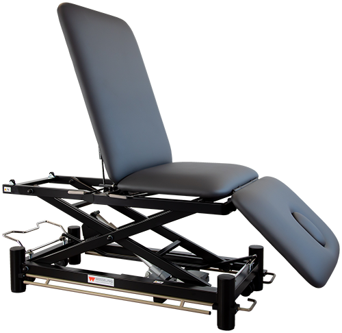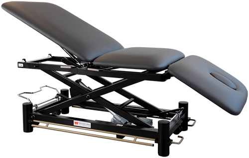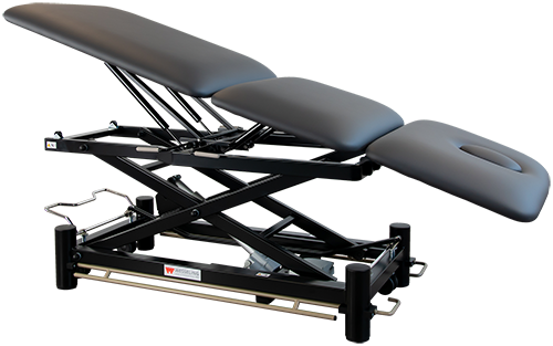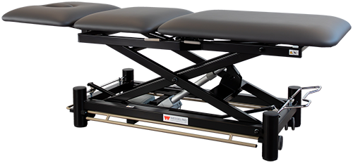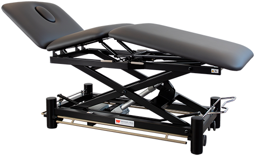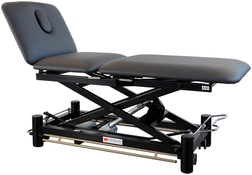 Deze professionele behandeltafel is voorzien van vrijwel alle wensen van een fysiotherapeut. De tafel is elektrisch bedienbaar door middel van een rondomschakeling. Is voorzien van een neusuitsparing en kan in PLI & trendelenburg-stand gepositioneerd worden. Het centrale wielhefsysteem zorgt ervoor dat de tafel makkelijk verrijdbaar is.