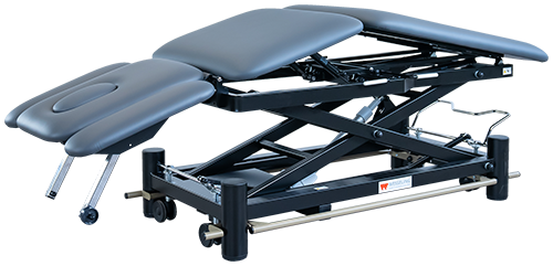 Deze professionele behandeltafel is voorzien van vrijwel alle wensen van een fysiotherapeut. De tafel is elektrisch bedienbaar door middel van een rondomschakeling. Is voorzien van een neusuitsparing en kan in PLI & trendelenburg-stand gepositioneerd worden. Het centrale wielhefsysteem zorgt ervoor dat de tafel makkelijk verrijdbaar is.