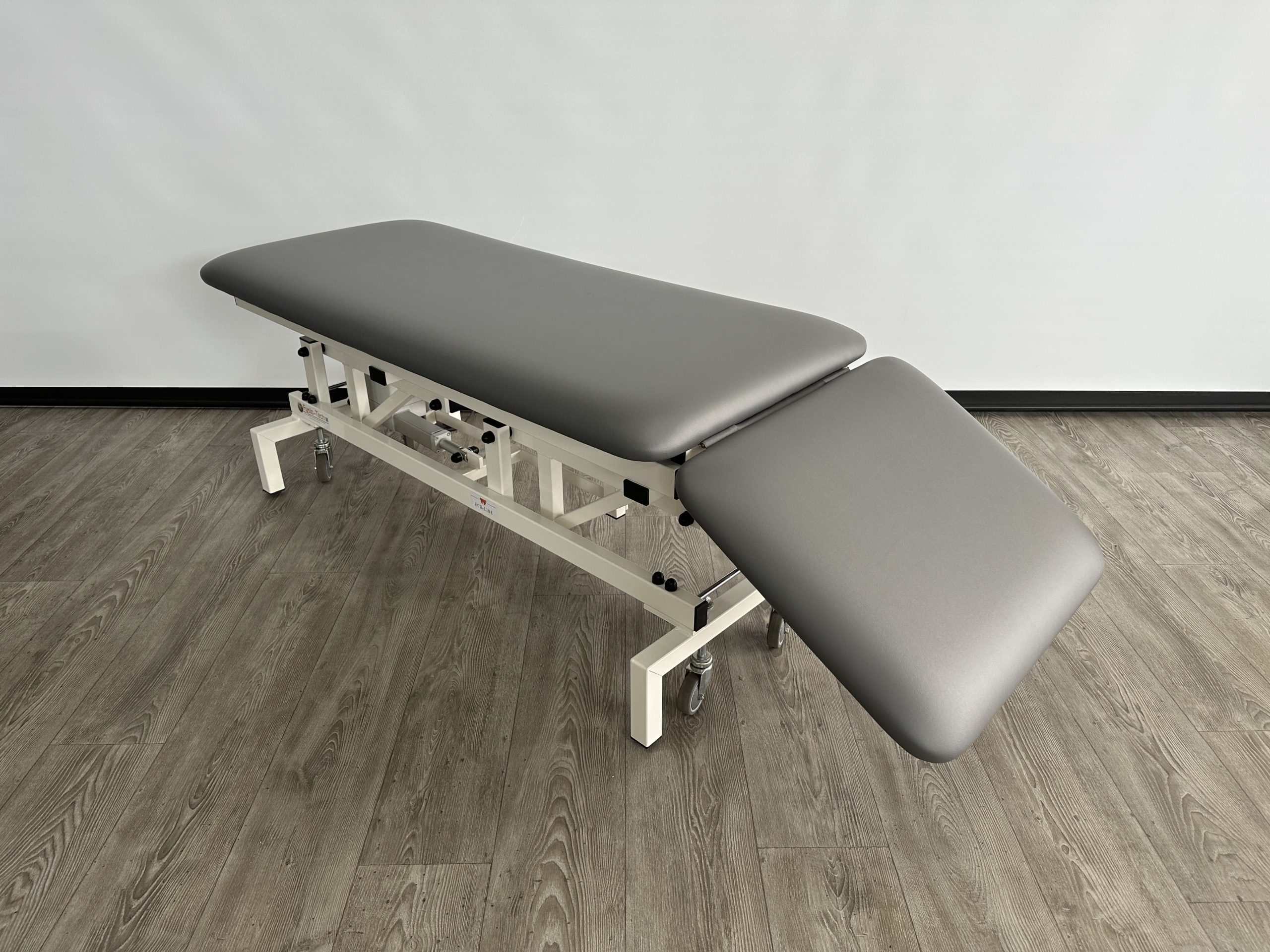 Deze professionele behandeltafel is elektrisch in hoogte verstelbaar doormiddel van een voetschakelaar.