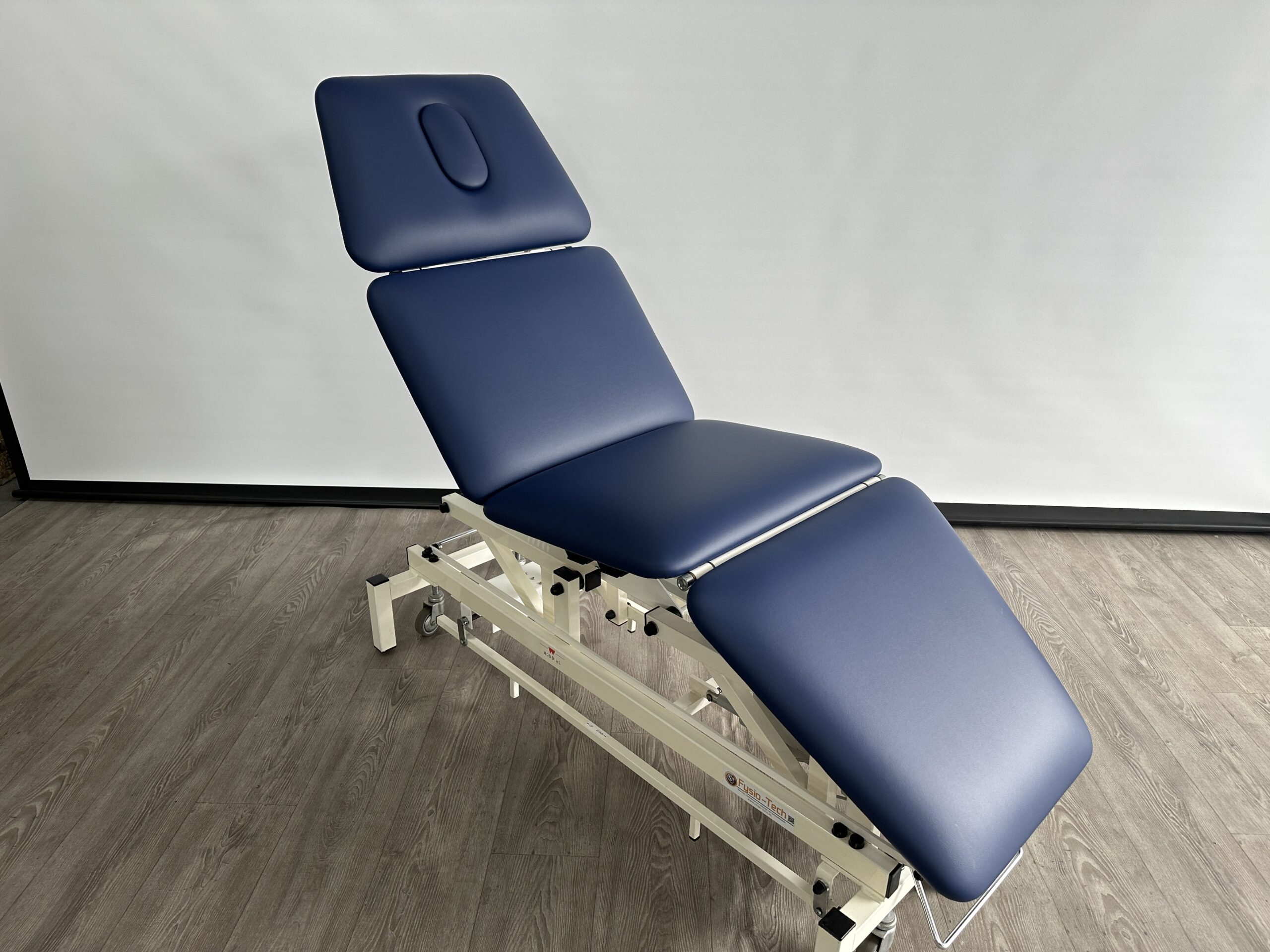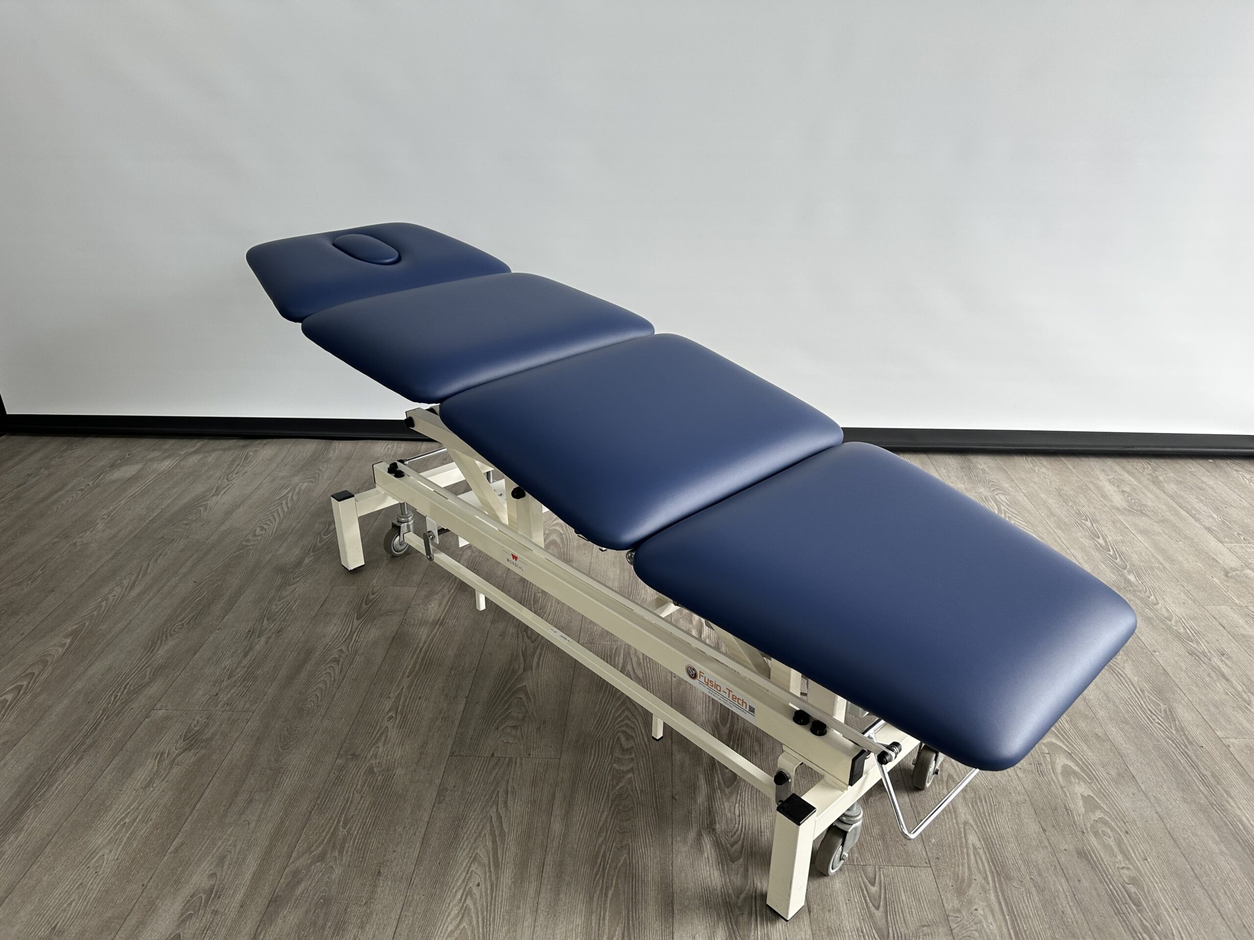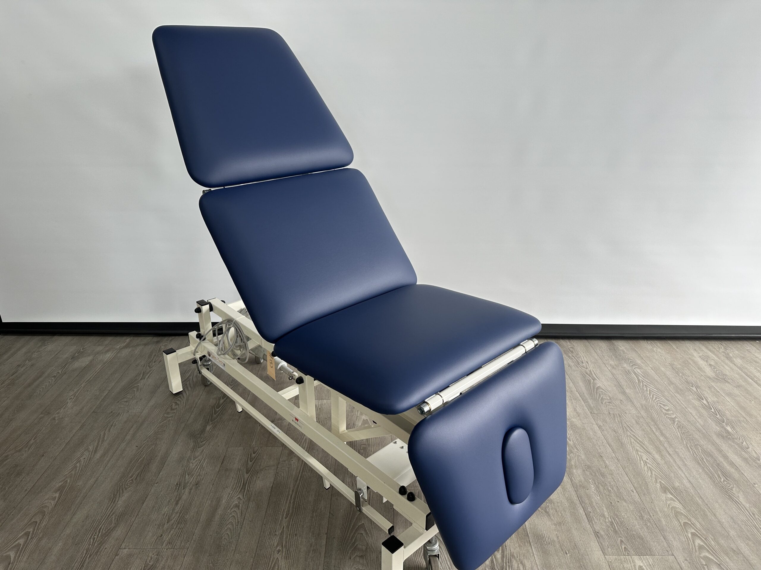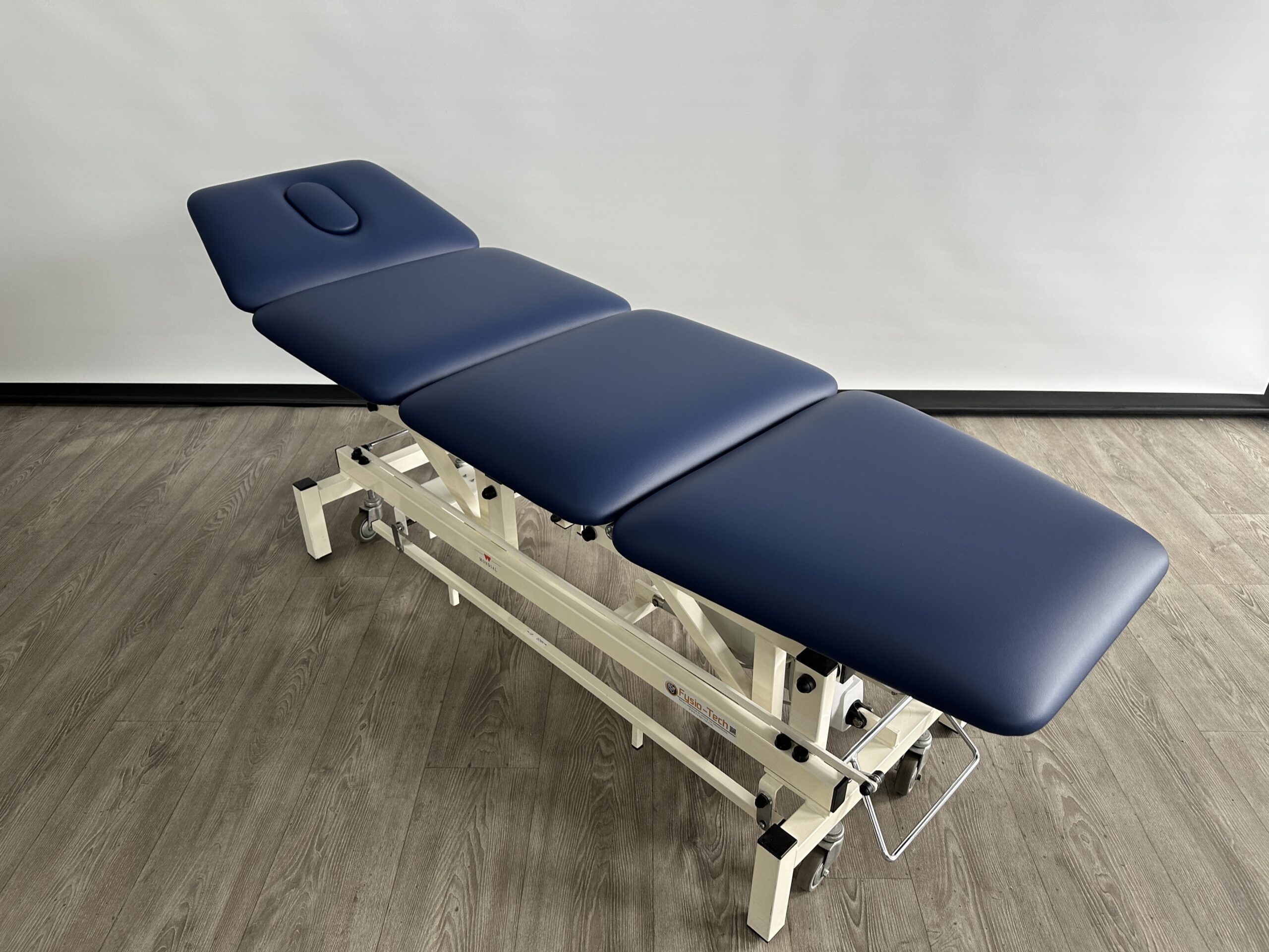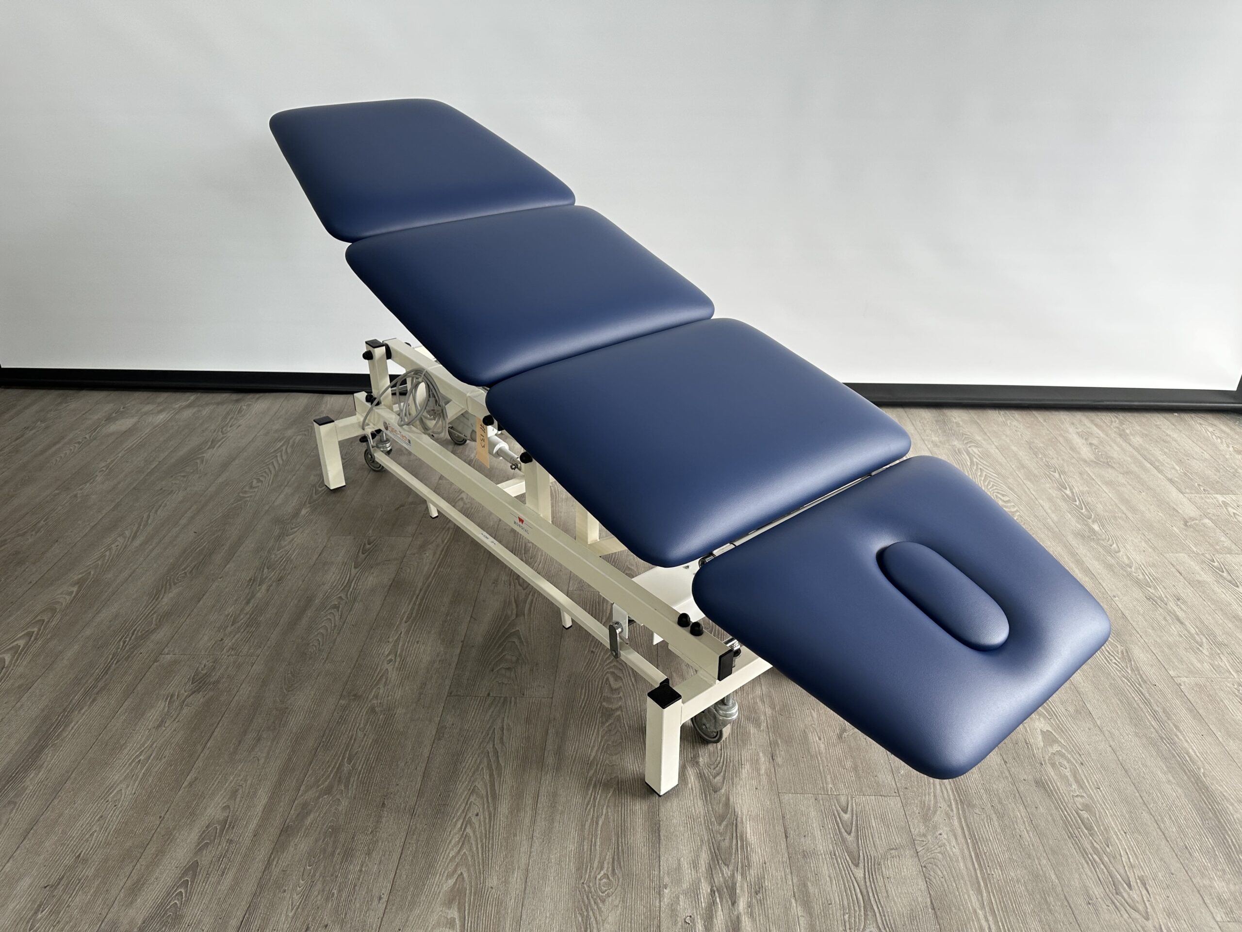 Deze professionele behandeltafel is elektrisch in hoogte verstelbaar door middel van een rondomschakeling.