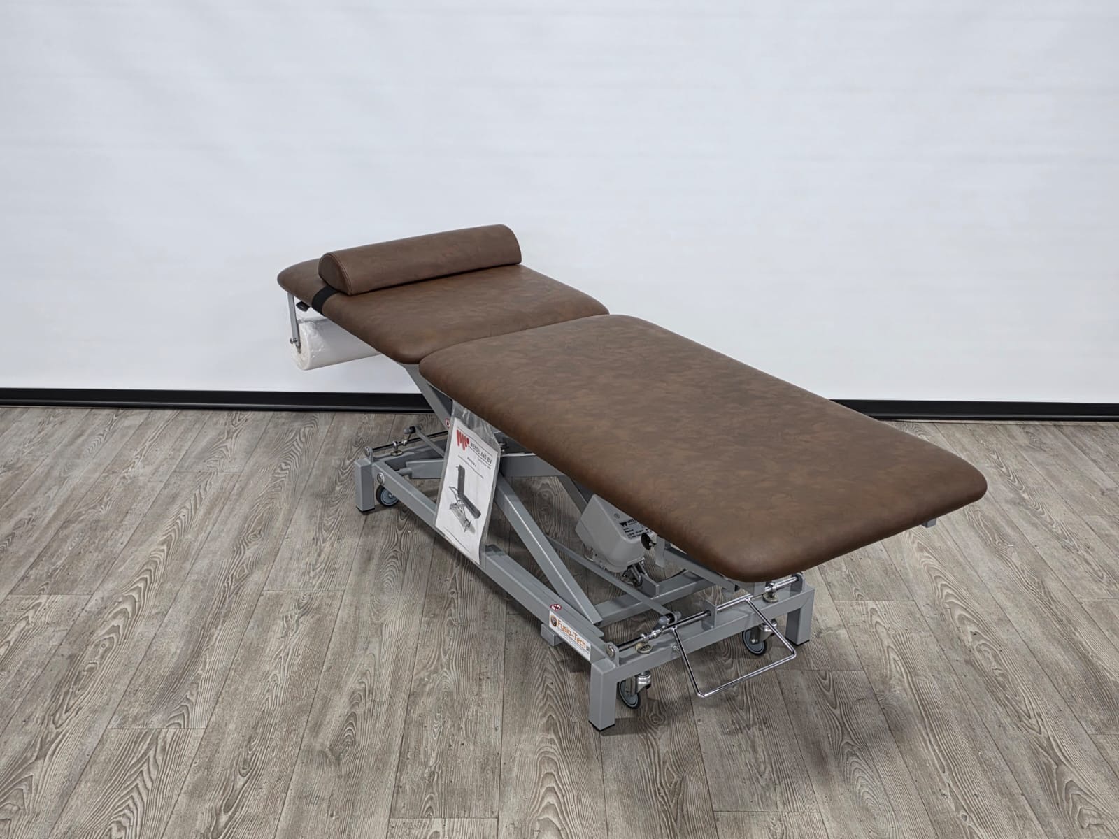 De tafel wordt geleverd met bijpassend nekkussen t.w.v €151 excl btw & een rol onderzoekstafelpapier.